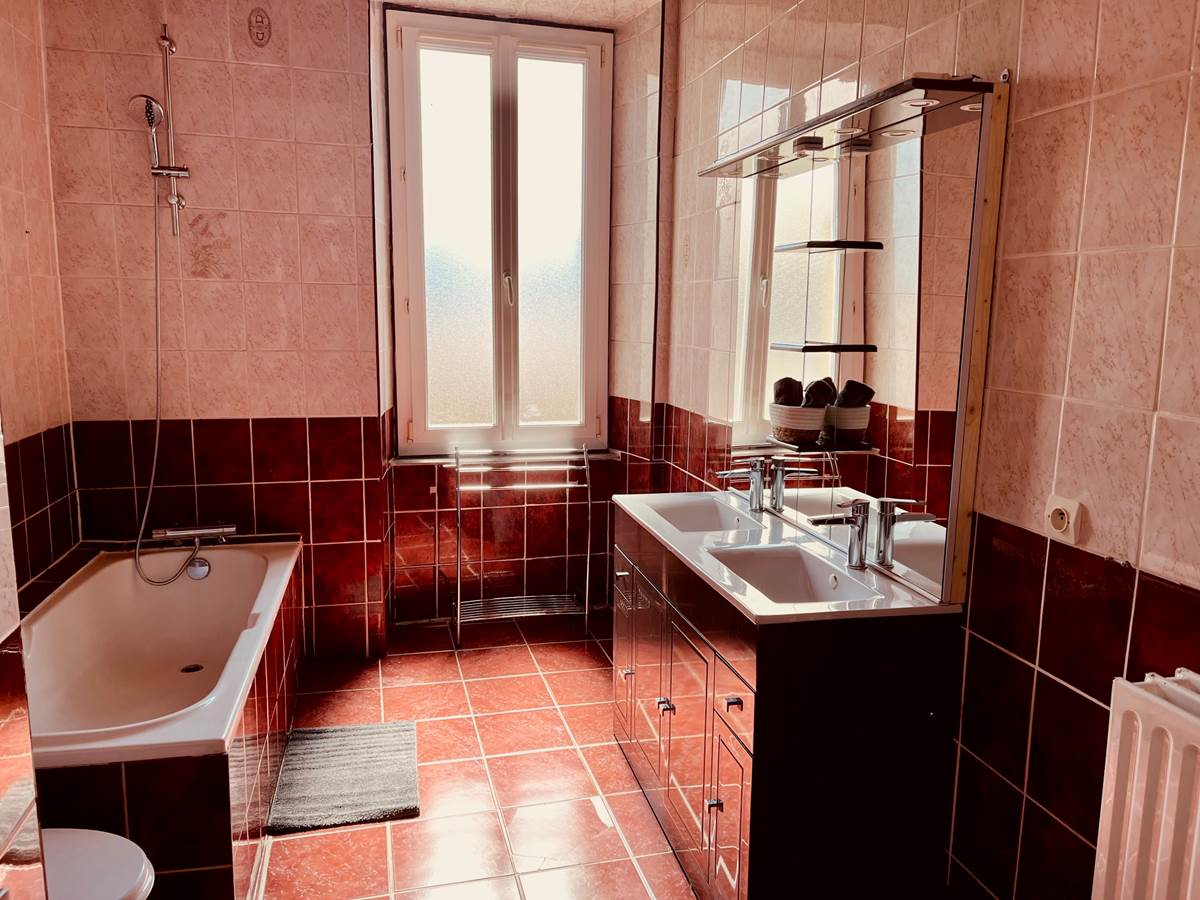 - une grande salle de bain avec baignoire, un deuxième WC, un meuble double vasque, une table à langer.